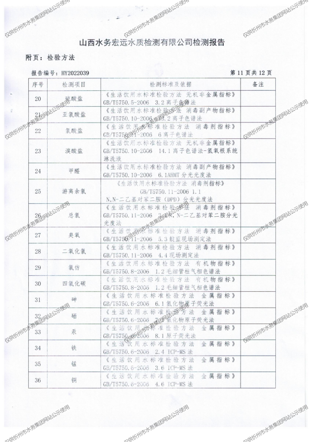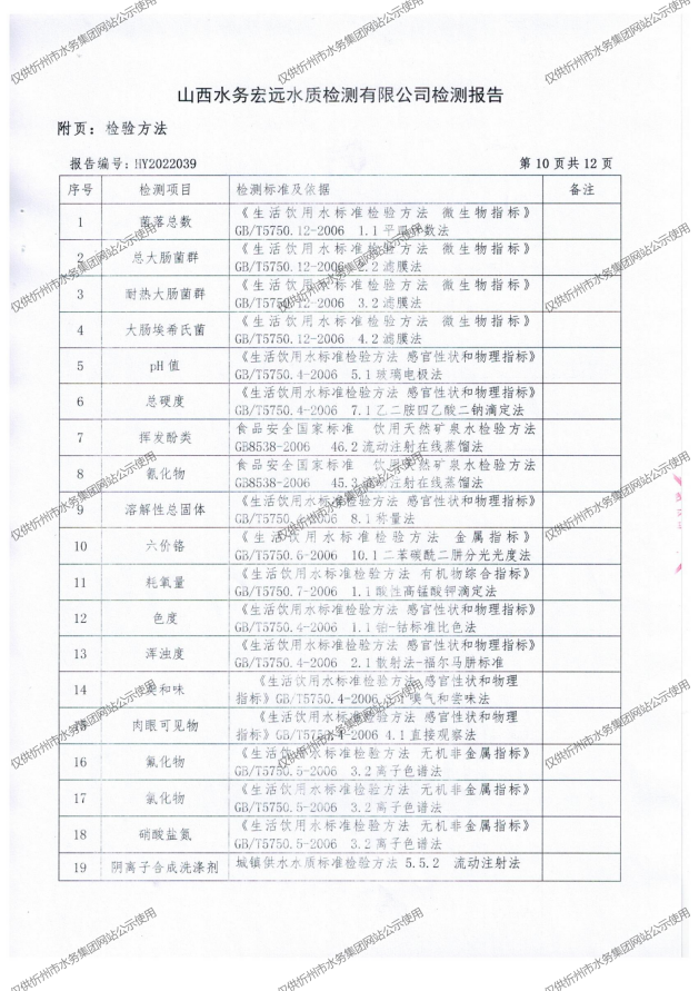忻州城區(qū)公共供水水源水、出廠水、管網水、管網末梢水2022年5月份水質信息公示