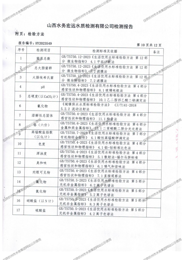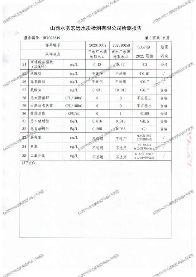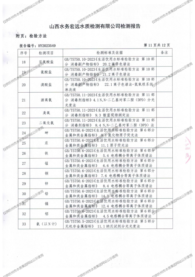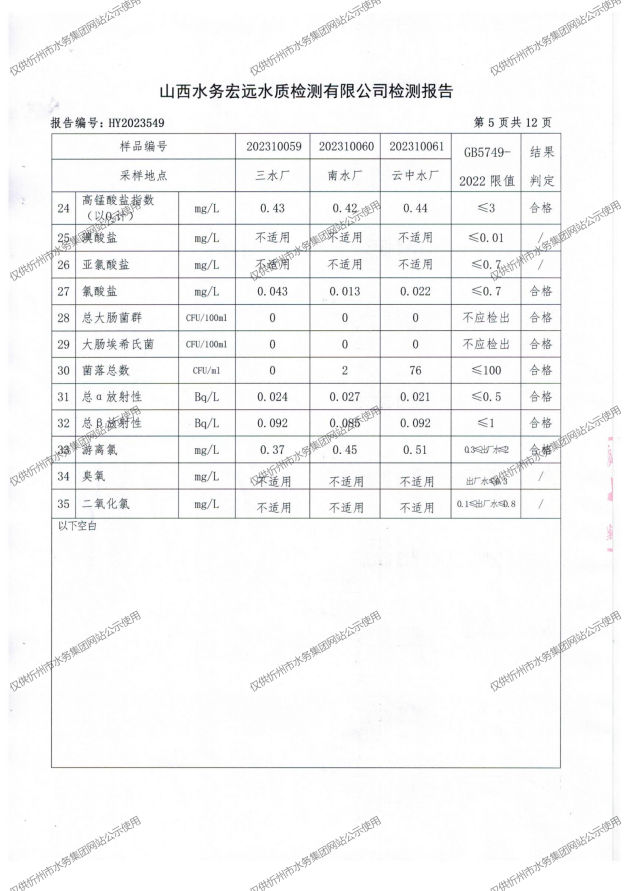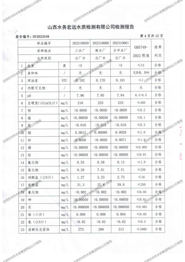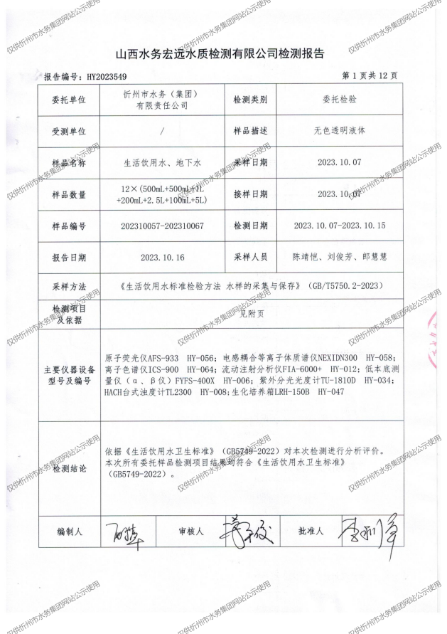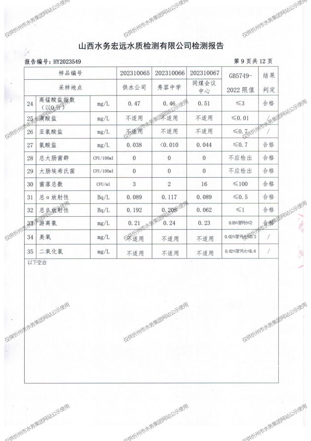 忻州城區(qū)公共供水水源水、出廠(chǎng)水、管網(wǎng)水、管網(wǎng)末梢水2023年10月份水質(zhì)信息公示